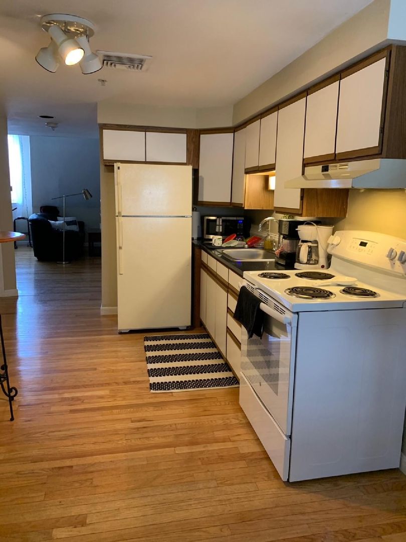 This apartment features hardwood floors, kitchen with dishwasher, and laundry on site.