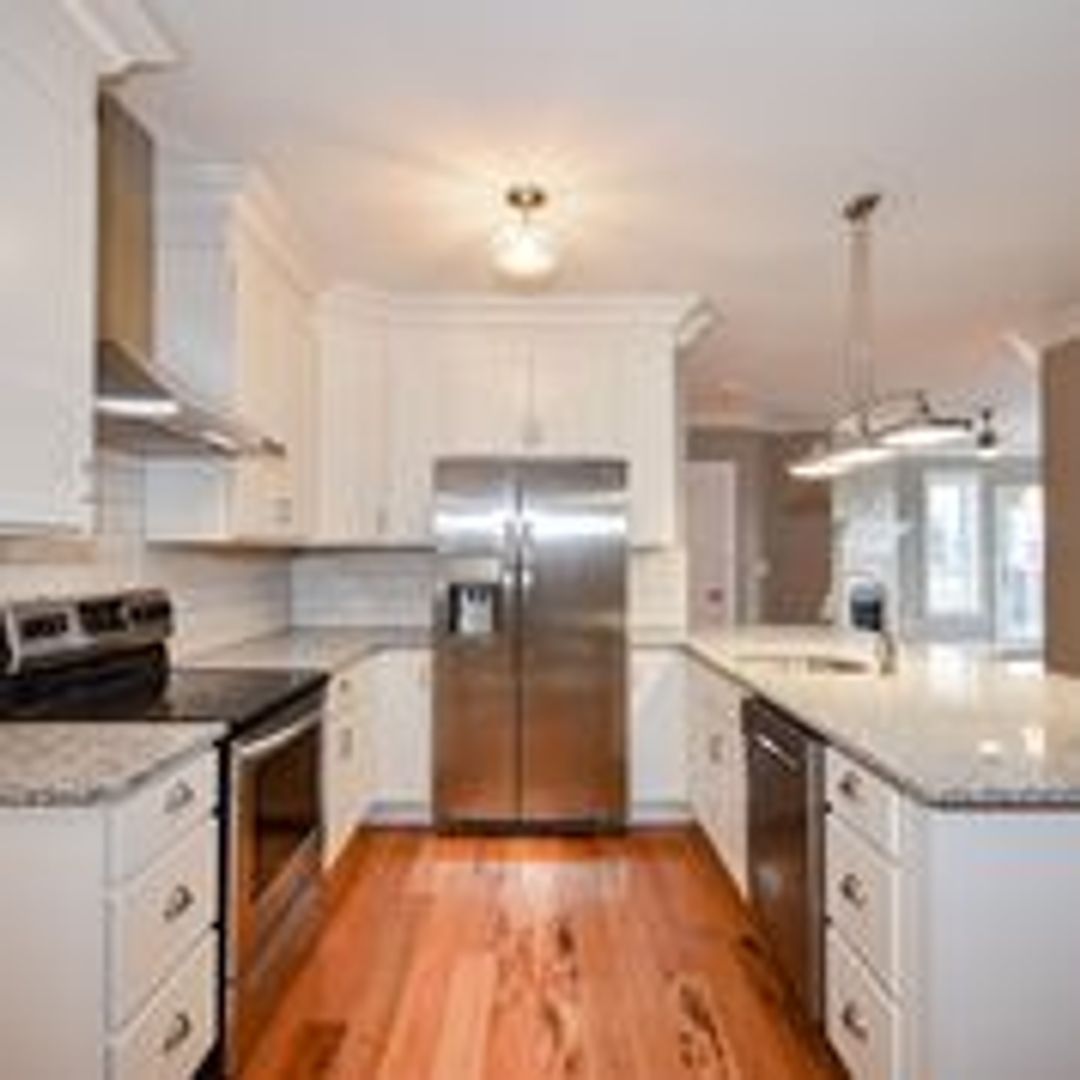 • Oversized island kitchens with custom hardwood Shaker-style cabinetry