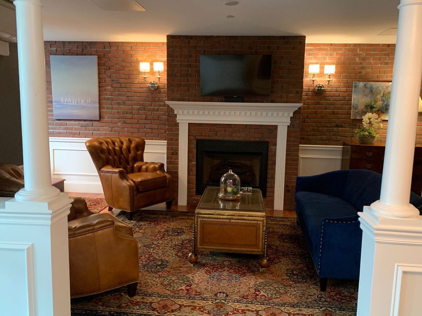 • Private Brick Fireplaces with Natural Gas provided by owner.